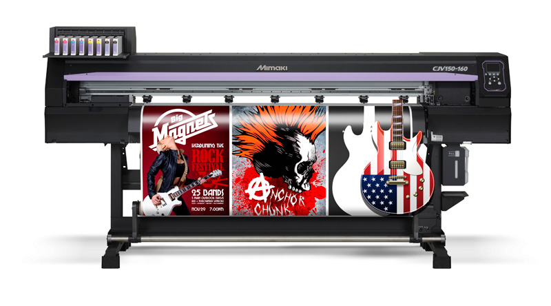 Mimaki CJV300 Series wide-format, high-speed eco-solvent printer/cutter devices go beyond extraordinary to deliver an amazing array of applications. Eco solvent inks in a variety of colors – including Silver – and advanced printing technologies means you can produce anything from fine art reproductions to outdoor signage. And, with precision cutting capability on board you can go beyond posters and banners to deliver complete campaigns that include prints for small or large labels, decals and even T-shirt transfers.