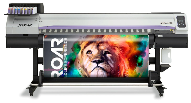 Mimaki JV150 Series inkjet printers go beyond versatility to deliver a remarkable range of applications. Gamut-extending eco solvent inks and variable drop technology enable you to accomplish anything from fine art reproduction to vehicle wraps and more. Or choose dye sublimation inks to create vibrant textiles and soft signage. Ideal for lighter production environments, the JV150 Series printers’ superb quality, color fidelity and flexibility give you the ability to go beyond the expected to deliver exactly what your customers need.
